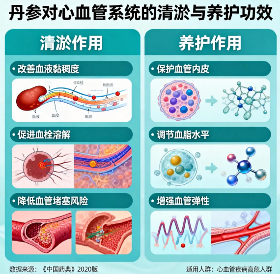 心血管保護:含有丹參酮、丹酚酸等活性成分,能改善微循環、抗動脈粥樣硬化、保護心肌細胞。