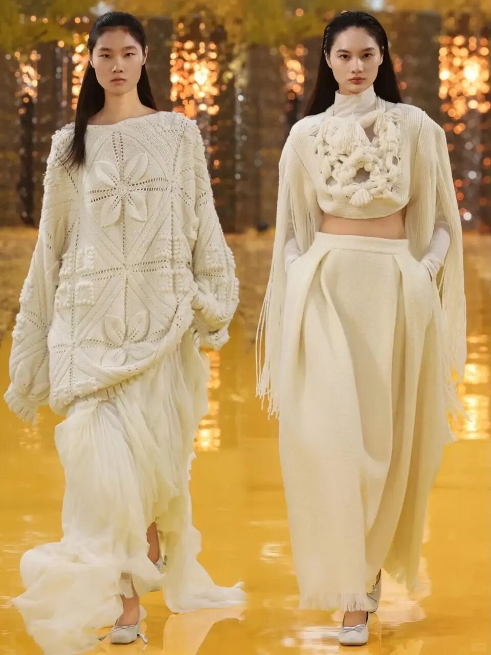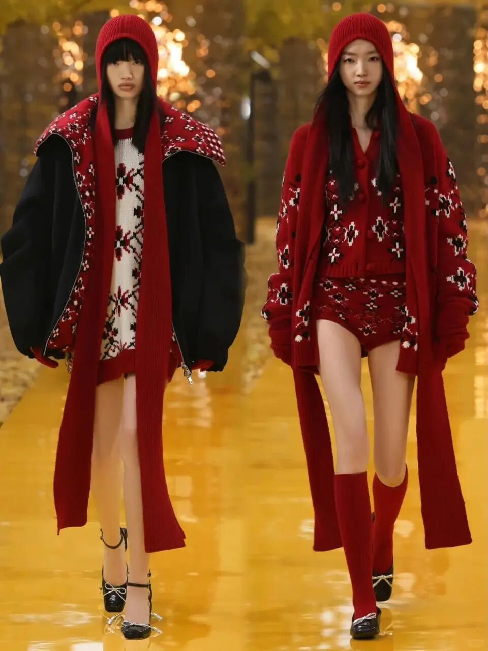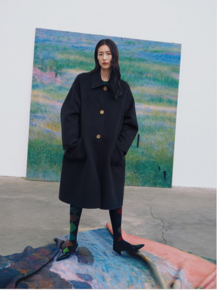 陳都靈上身的費爾島毛衣(左),劉雯在品牌海報上的廓形羊絨大衣(右)