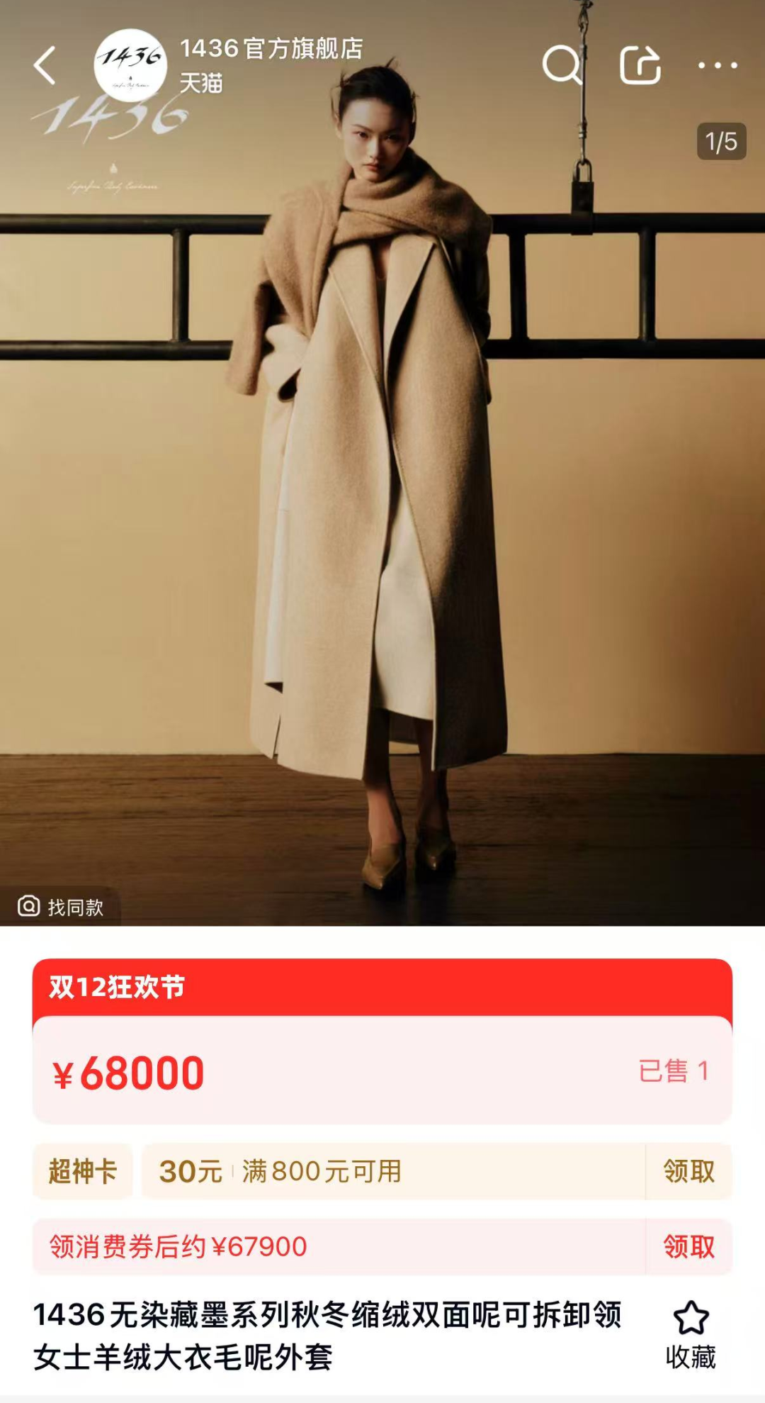 ●標價68000元的1436羊絨大衣