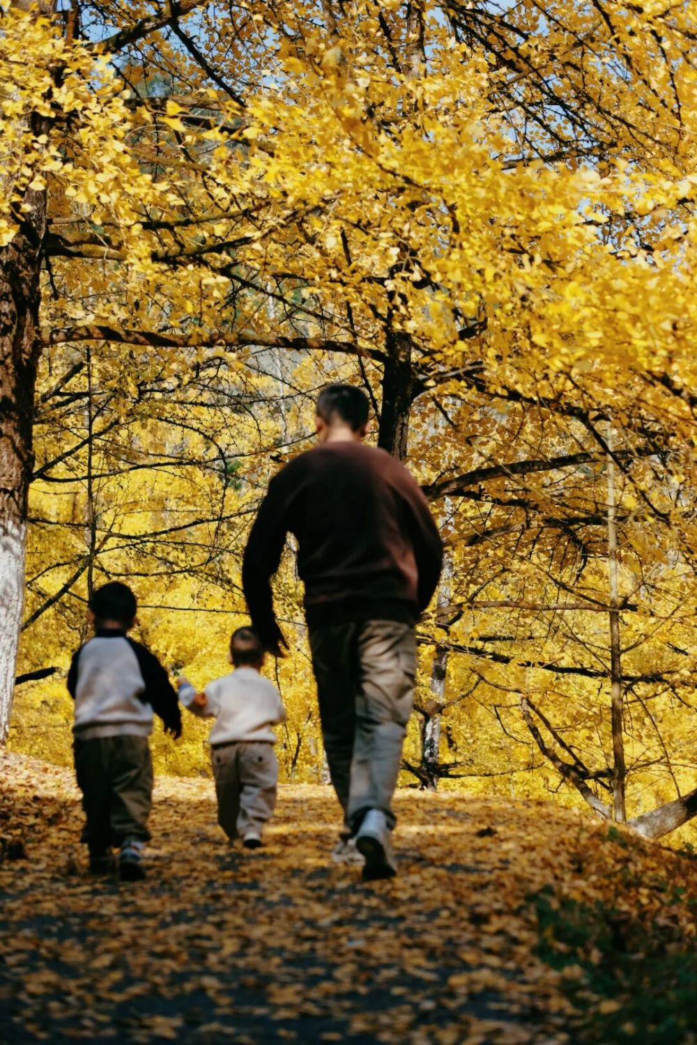鏡頭外的我看著父子仨一起跑進(jìn)金色的秋天。@巧克力江江包
