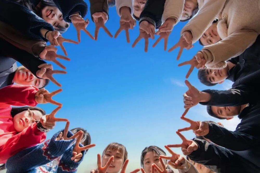 這是今年年初的時(shí)候,那會(huì)兒在大學(xué)當(dāng)實(shí)習(xí)老師,與其他老師、同學(xué)一起感受青春朝陽,在藍(lán)天下憧憬著未來的方向,感受著時(shí)代的美好。我們圍成一圈,合了照。@阿杰