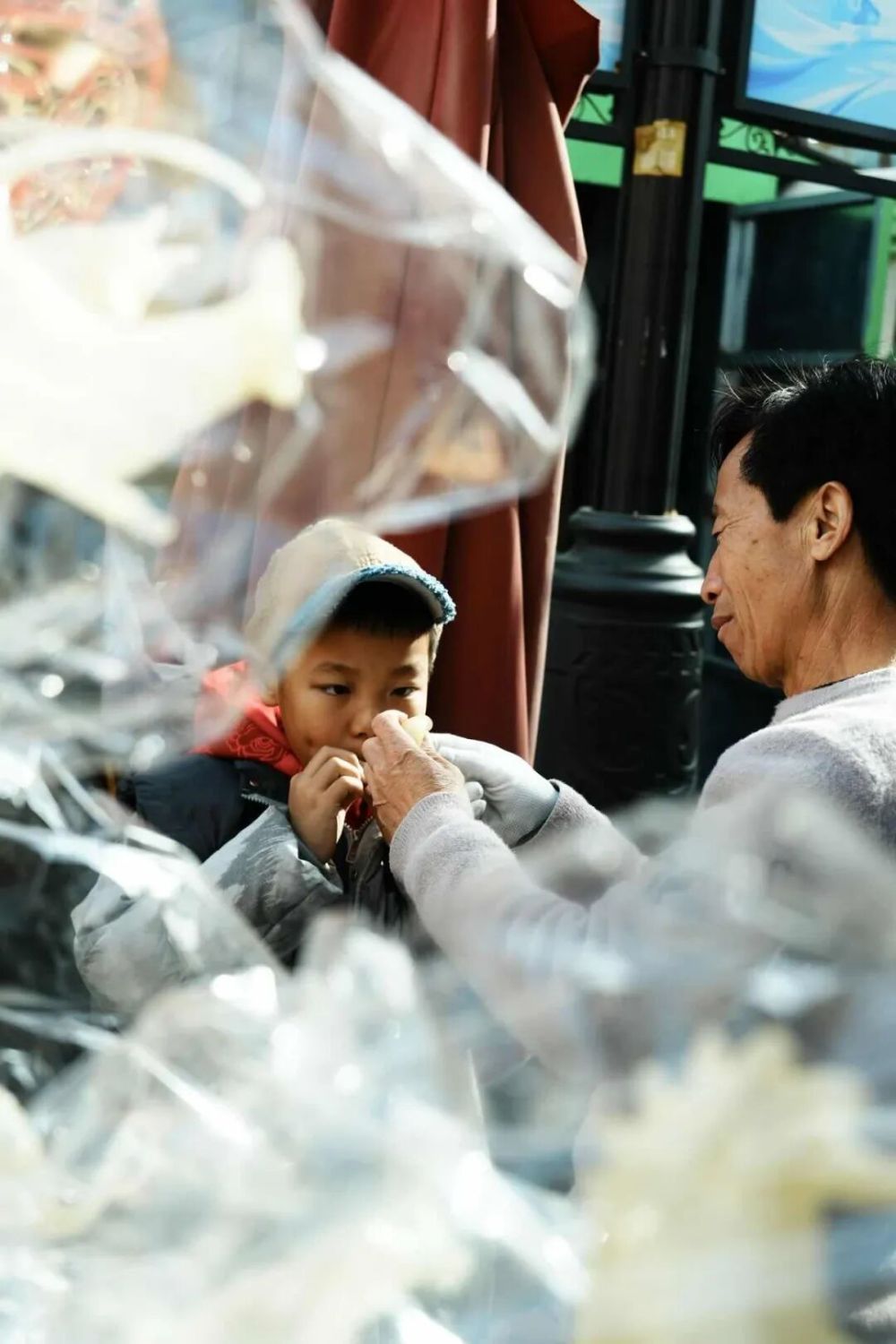 在天津,吹糖人的匠人在指導(dǎo)小孩兒。那一刻,陽光正好,我看到匠人滿眼溫柔地望著小孩兒,冬日的溫馨在此具象化。@x
