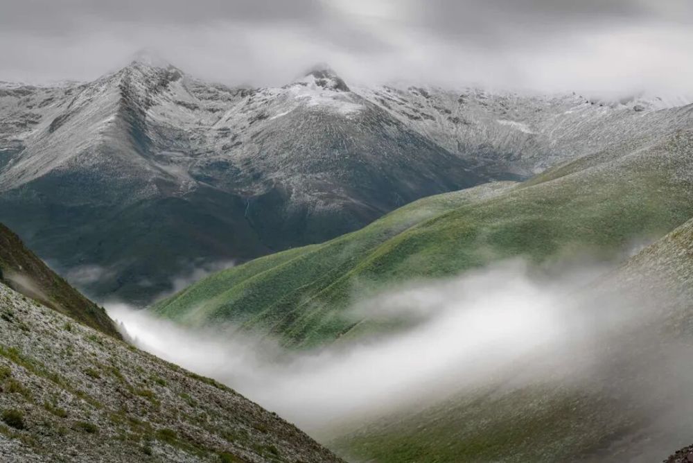秋分時(shí)節(jié),在海拔4700米的甘孜州貢嘎山鎮(zhèn)子梅埡口,遇見入秋后的第一場降雪。@Collimator