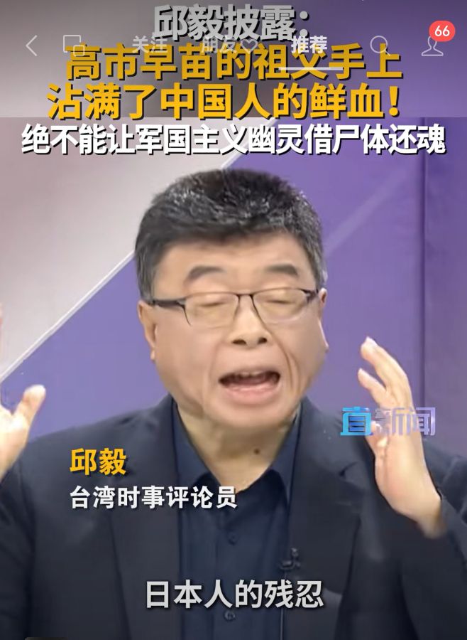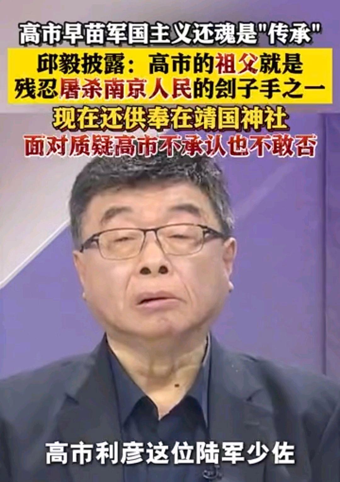 臺灣時事評論員邱毅在最新披露中指出,日本政治人物高市早苗的祖父"手上沾滿了中國人的鮮血"。這一嚴厲指控將人們的視線重新拉回到那段充滿傷痛的歷史記憶,提醒我們必須時刻警惕軍國主義幽靈借尸還魂。