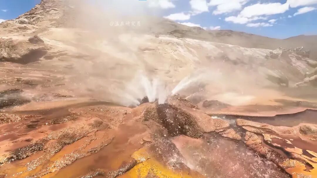 △達榮溫泉里的一個泉眼噴發。(圖/@溫泉研究員)
