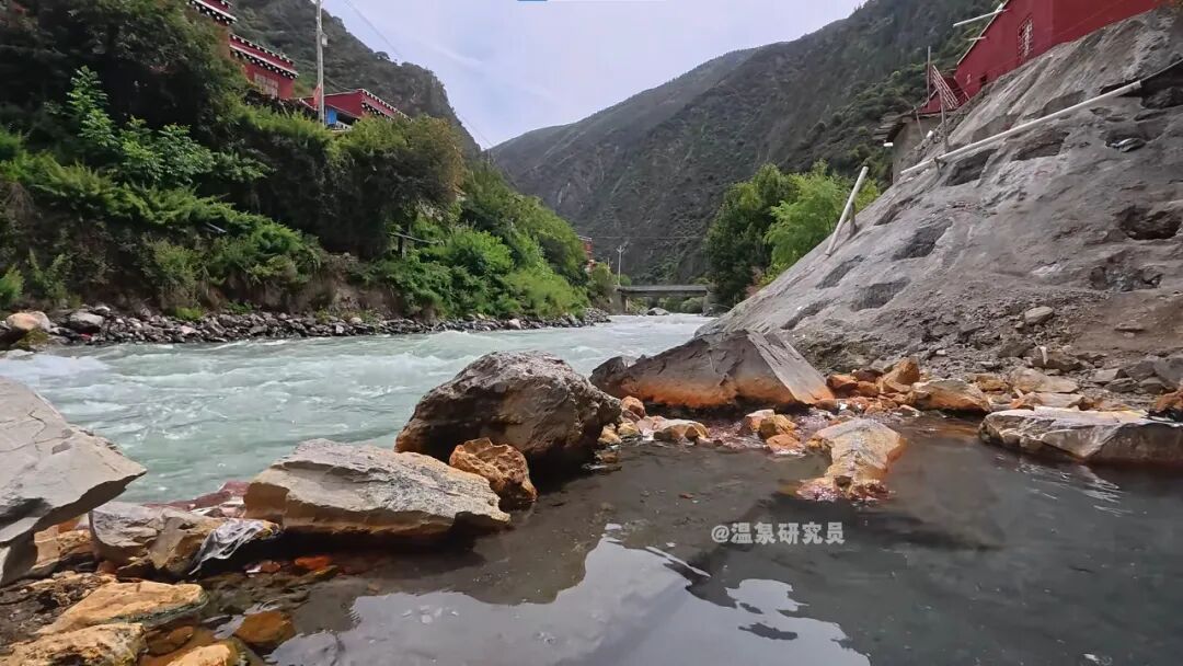 △左邊河流,右邊泡池,研究員夸這里“親水氛圍不錯”。(圖/@溫泉研究員)