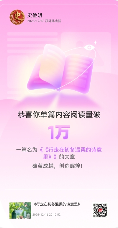 生活本就是一場在塵土中跋涉的旅程,那些艱辛與奔波,都是生命的底色。當我們能像陶淵明般堅守,像洪信明般熱愛,像梁鴻般凝望,便會發現:詩意不在遠方,而在每一次認真勞作的清晨,每一次對抗困境的堅持,每一次于平凡中發現美好的感動。所謂詩意人生,不過是在塵土飛揚中,依然保持對生活的熱愛與敬畏,讓心靈在歲月的磨礪中,綻放出最美的花。#2025新星計劃4期##2025頂端人氣創作者 ##創作挑戰賽十一期##隨筆#