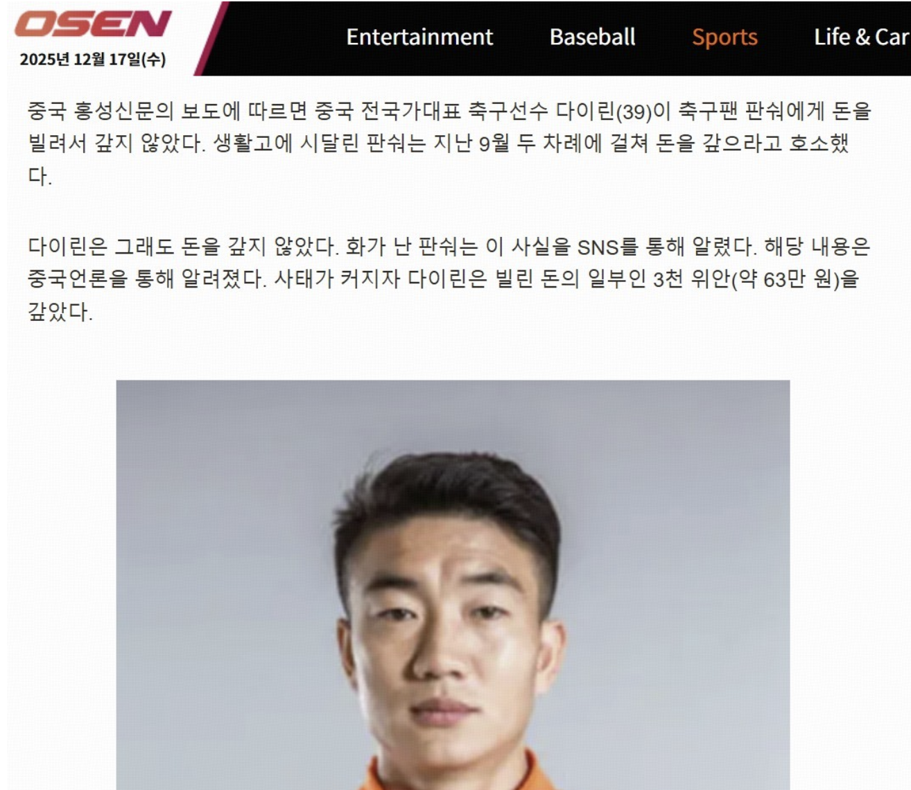 韓國媒體《OSEN》在今日報道了戴琳不還錢的事情,標(biāo)題為《中國足球真的那么糟糕嗎?一前國腳向球迷借錢,甚至對其進(jìn)行辱罵》,內(nèi)容大致如下:“中國足球進(jìn)入了死胡同。中國男足球員戴琳向球迷借錢,但拒絕還錢。戴琳還辱罵了球迷。”