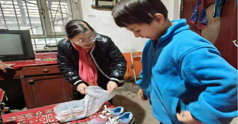 在系列活動開展的同時,結親干部與村“兩委”班子成員組成走訪小組,深入轄區各族群眾家中開展入戶走訪。走訪至村民帕孜力·吉利力家時,結親干部特意送上提前根據孩子鞋碼挑選的新鞋子。孩子接過嶄新的鞋子,立刻開心地試穿起來,合腳的新鞋讓小家伙臉上洋溢著燦爛的笑容,不停地向干部們表達感謝。干部們蹲下身子仔細查看鞋子是否合腳,詳細詢問孩子的生活學習情況、成長中的需求,叮囑家長要關注孩子的冬季保暖和身心健康,鼓勵孩子好好學習、將來成為對社會有用的人。這份精準對接需求的暖心關愛,既溫暖了孩子的雙腳,更拉近了干部與群眾的心靈距離,讓各族群眾深切感受到黨和政府的關懷與溫情。同時,干部們與該戶群眾及其他走訪家庭面對面交流、心貼心溝通,詳細了解生產生活狀況、身體健康情況及實際困難訴求,認真傾聽對村里發展、民生保障、民族團結等工作的意見建議。此外,干部們還向群眾宣傳民族團結進步相關政策及冬季安全用電用火等知識,引導各族群眾自覺維護民族團結和社會穩定,共同為鄉村振興貢獻力量。