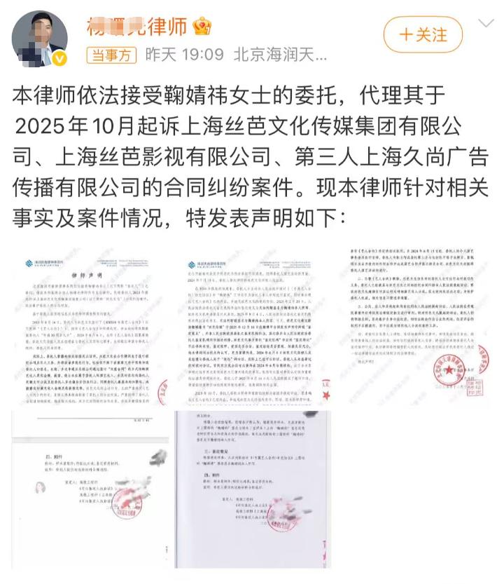 原該是去年到期的合約,卻被絲芭傳媒拿出“補充協議”主張延長至2033年,試圖鎖住她的“黃金十年”。