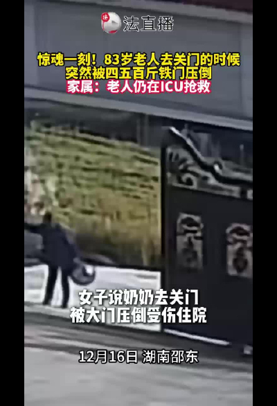 八旬老人被鐵門壓倒,家屬:門有四五百斤重,老人仍在ICU搶救
