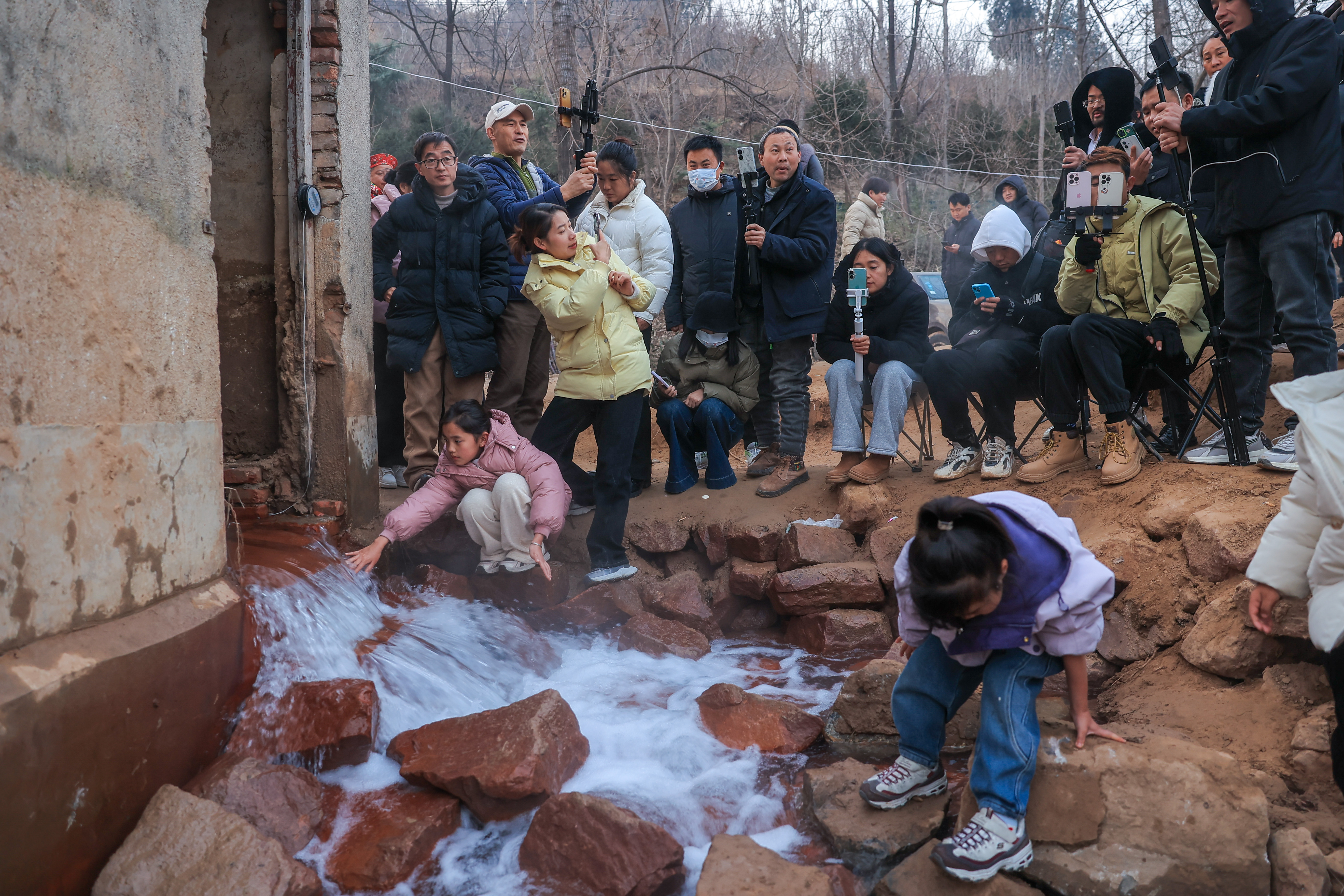 現場,一位60歲的梨園河村村民告訴記者,他每天清晨都會和幾位村民一起,自發在岸邊撿拾垃圾、協助維持秩序。“我們從小就在這玩水、抓魚蝦,對這條河感情很深。它干了這么多年,大家心里都空落落的。如今泉水回來了,希望越來越多的人能知道我們梨園河村。”