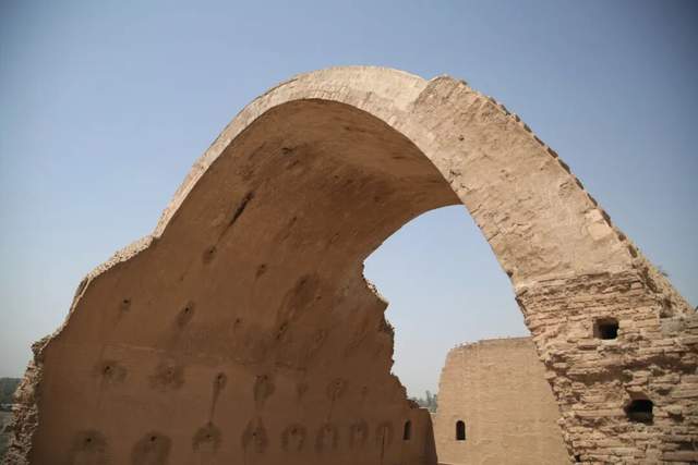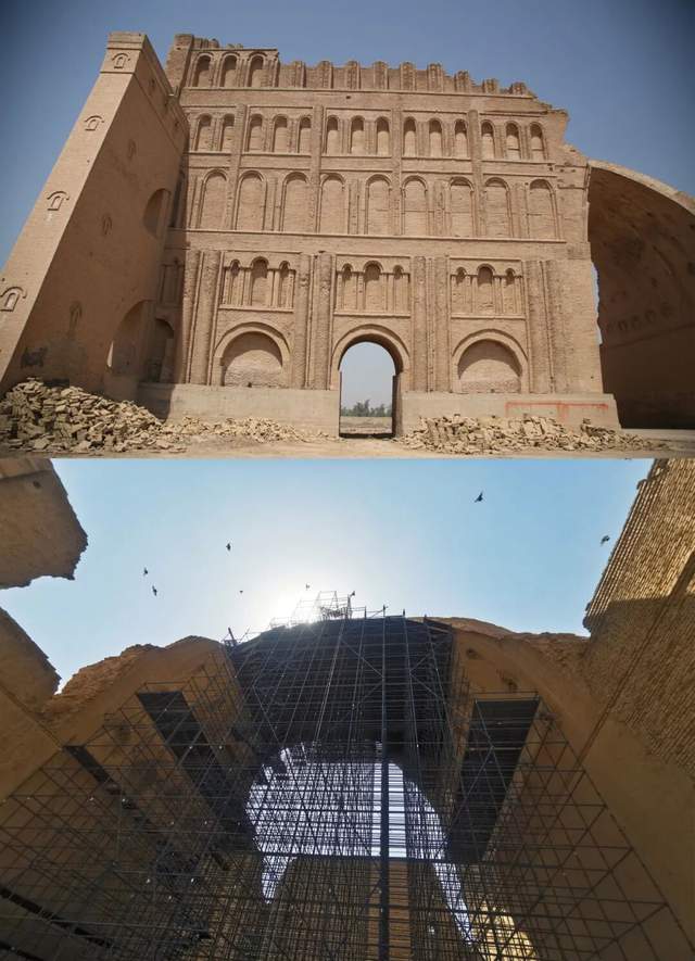 泰西封遺址覲見大廳,氣勢恢宏,劉拓曾拍過它,它坐西朝東,清晨順光。但石曼琳抵達時已是午后,建筑正面背光,拍攝效果不佳,并且這拱券還架起了腳手架。