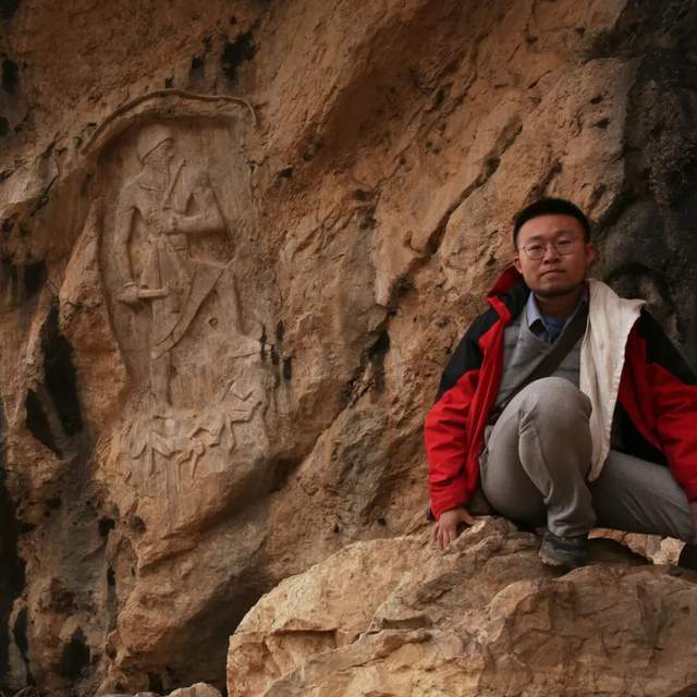 (圖:與阿卡德國王納拉姆辛浮雕合影)▼