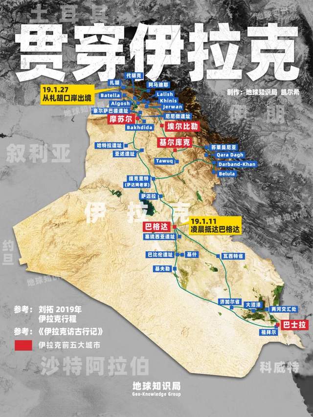 他這兩次伊拉克之行的路線,無意中也正好符合伊拉克文化上的地理分界——大體以今天的巴格達—薩邁拉一帶分界,南部被稱為巴比倫尼亞,北部被稱為亞述。