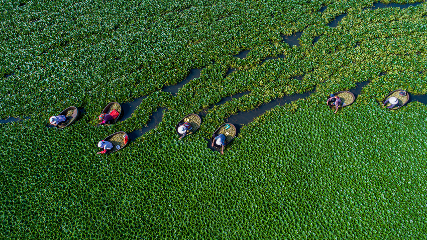 “散花芥菜”是地理標志產品,莖粗葉肥,脆嫩微辣,腌制后咸香開胃,是鄂東人餐桌上不可或缺的“下飯菜”。老菜農李嬸蹲在田埂上摘芥菜,說:“我們這芥菜,喝長江水,曬江灘的太陽,長得帶勁!從前挑到黃石、黃州賣,現在成了‘網紅’,快遞車直接開到田頭。”除了芥菜,散花的“芝麻湖藕”也頗有名氣,藕節粗壯,淀粉含量高,煨湯粉糯香甜,相傳曾為貢品,如今仍是年夜飯的“壓軸菜”。