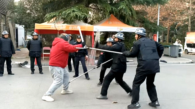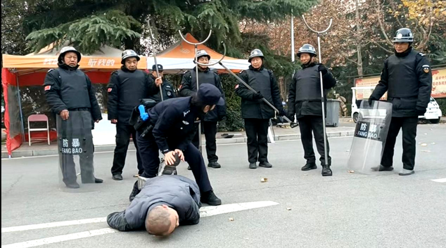15時30分,演練正式拉開帷幕。派出所教導員張潘結合典型案例與實戰需求,圍繞防暴盾牌、鋼叉等裝備使用技巧,通過理論講解、分組實操的方式,為校園安保力量開展專項培訓?!耙郧坝枚芘浦粫矒?,現在學會了借力和配合,心里更有底了!”一名保安師傅實操后說道。