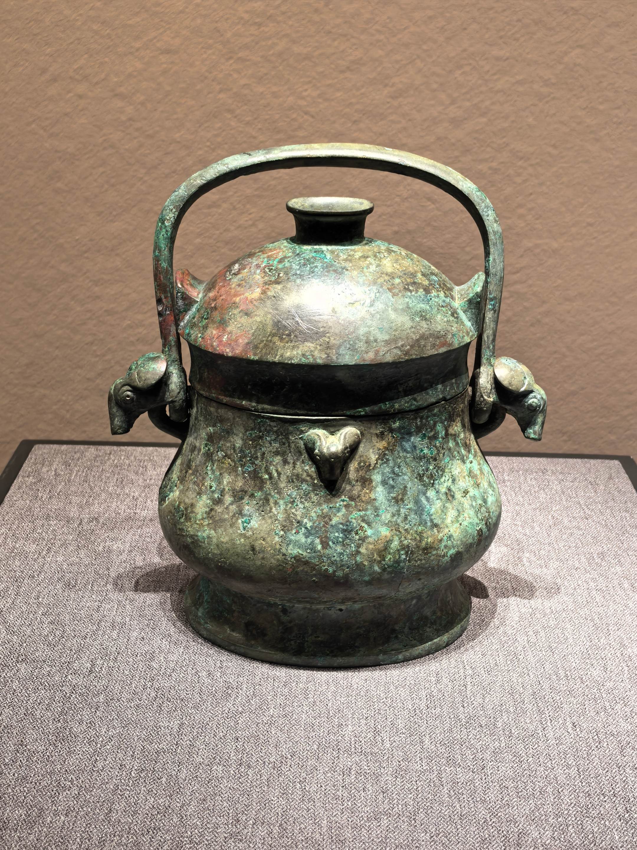 獸耳提梁卣,西周青銅盛酒器,1982年穎上王崗出土,現收藏于安徽博物院。