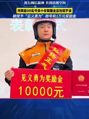 00后外賣騎手徒手制服金店搶劫歹徒!獲得1萬元見義勇為獎金,第一時間寄給父母。網友:把勇敢留給社會,把溫柔留給家人!