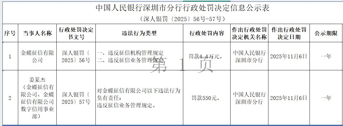 監管公示信息顯示,近日,金蝶相關征信主體因違反征信機構和征信業務相關管理規定,被處以4.4萬元的罰款,數字信用事業部相關負責人也被處以500元的行政處罰。