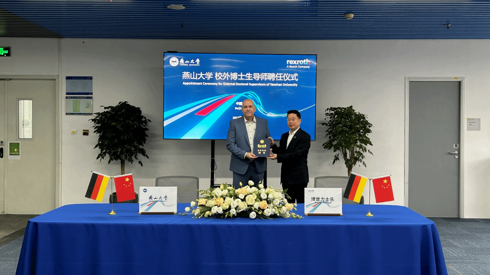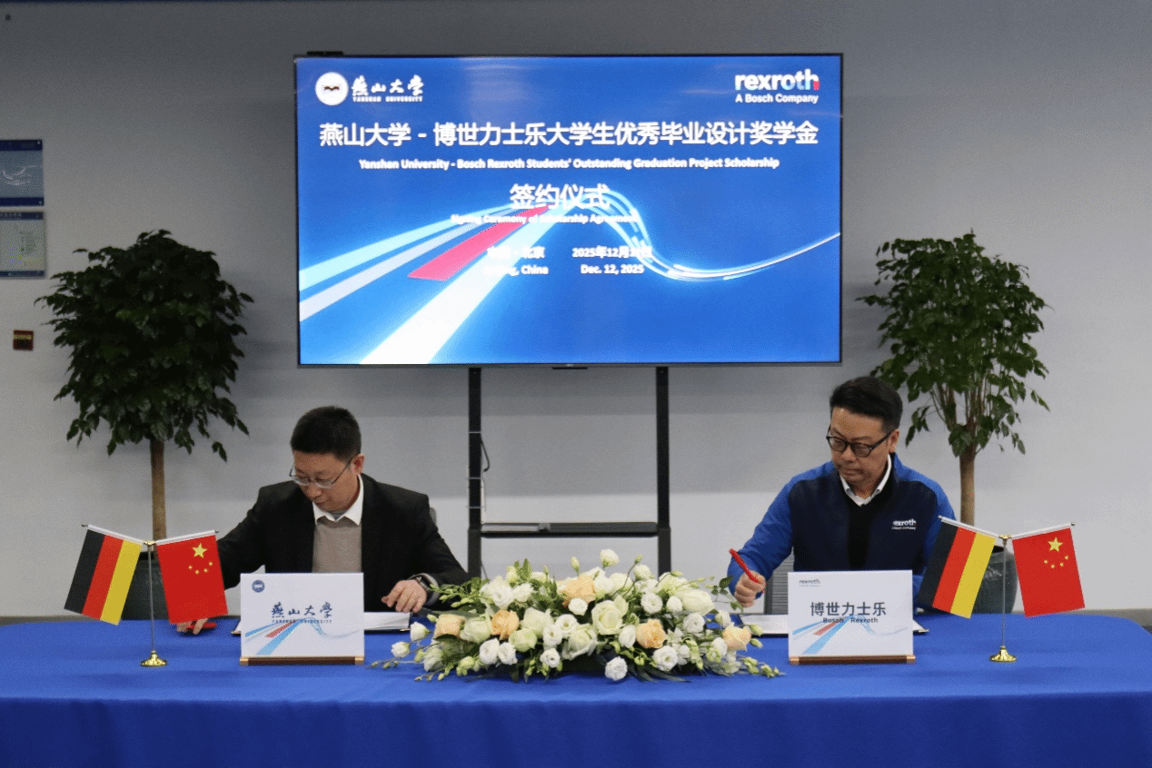 在與會人員的共同見證下,華長春與劉火偉代表雙方簽署了共建聯合技術合作協議以及“燕山大學-博世力士樂大學生優秀畢業設計獎學金”協議。趙險峰為斯蒂芬·哈克、陳永伯(研發總監)頒發了燕山大學校外博士生導師證書。本次簽約標志著校企雙方合作進入新階段,為后續人才培養、教育培訓與科研合作等方面持續推進落地奠定了堅實基礎。