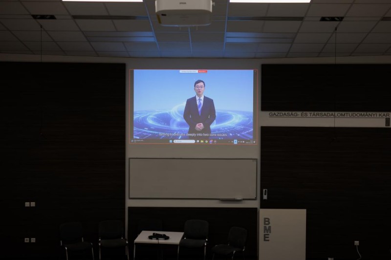 朱凱代表東北財經大學發表視頻致辭,對論壇的召開表示熱烈祝賀。他表示,當前我們正處在一個人工智能迅猛發展的歷史性階段,AI不僅重塑人類認知世界的方式,也在深刻改變知識傳授與教學組織的形態。本次論壇聚焦教育工作者與行業實踐者共同關切的核心議題,不僅深化了東北財經大學與布達佩斯技術與經濟大學的校際合作,更創新構建了“高校—高校—企業”三方聯動的國際合作機制,對培養面向未來的國際化創新型人才具有重要推動意義。