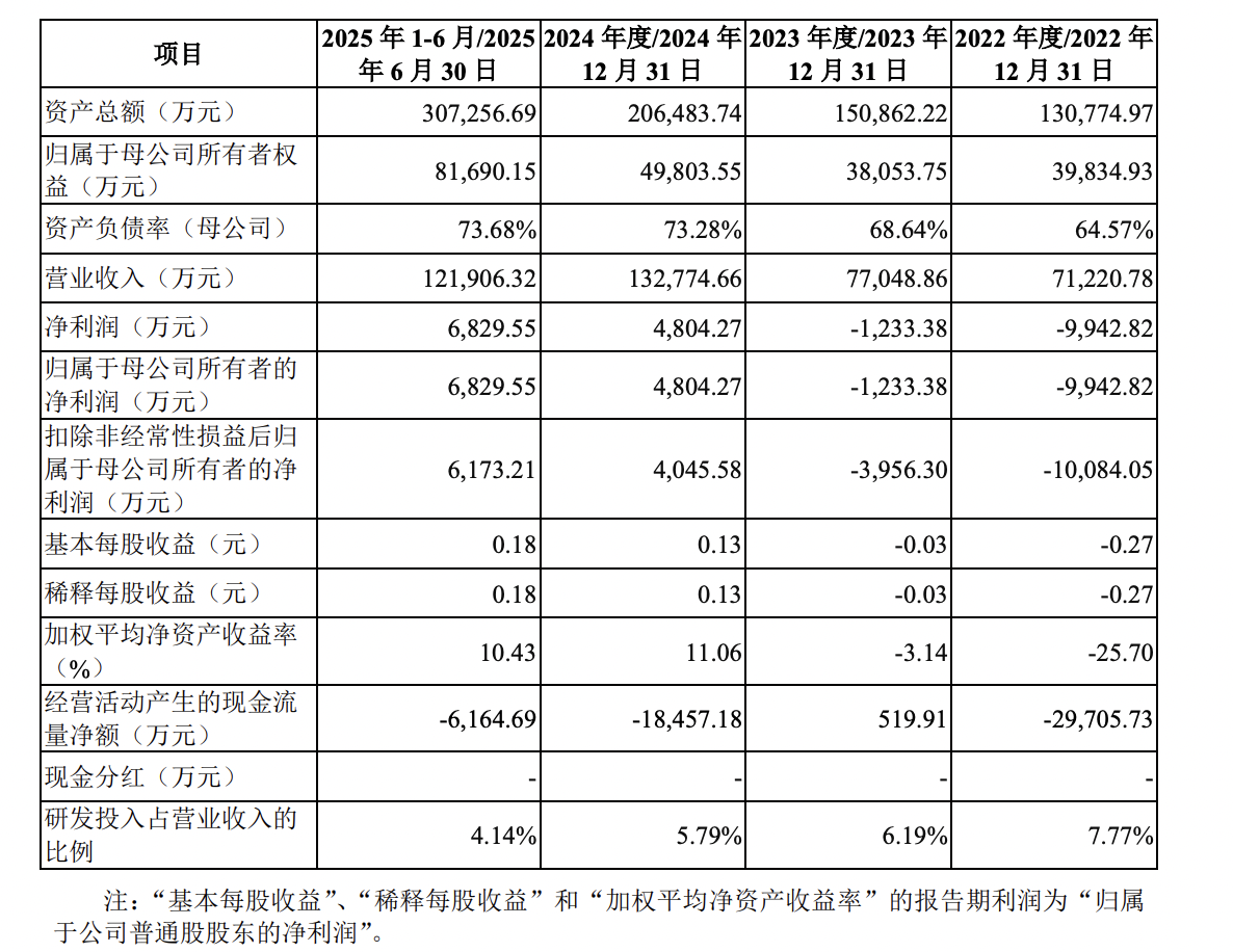 2022年-2024年及2025年上半年,綠控傳動營業收入分別為7.12億元、7.7億元、13.28億元及12.19億元;歸屬于母公司股東的凈利潤分別為-9942.82萬元、-1233.38萬元、4804.27萬元及6829.55萬元;綜合毛利率分別為7.13%、16.77%、19.78%和19.38%。