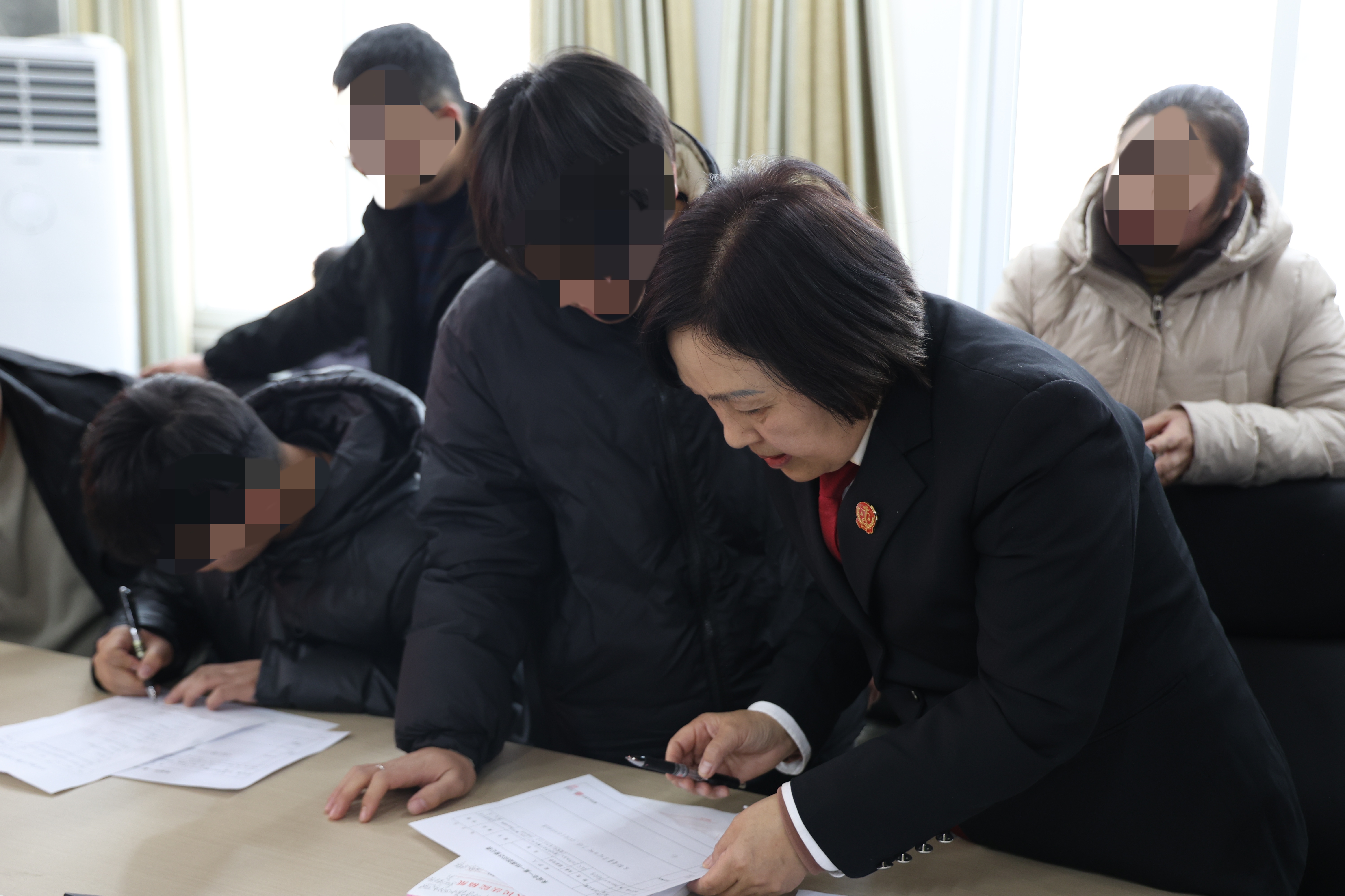 回訪幫教過程中,王慧法官現場指導矯正對象認真填寫“未成年一案一檔跟蹤回訪登記表”,并與家屬面對面交流,細致詢問并記錄孩子們案發后的心理變化及近期生活學習狀況、社區矯正表現、未來發展規劃等。隨后,與會人員圍繞部分社區矯正對象在就業、心理、生活等方面的實際需求展開討論,提供針對性指導建議,并就相關幫扶措施進行現場協調,針對不同家庭的具體困難,各單位代表主動對接、積極回應,共同研究落實救助方案,合力引導“迷途少年”回歸正軌、重回社會。