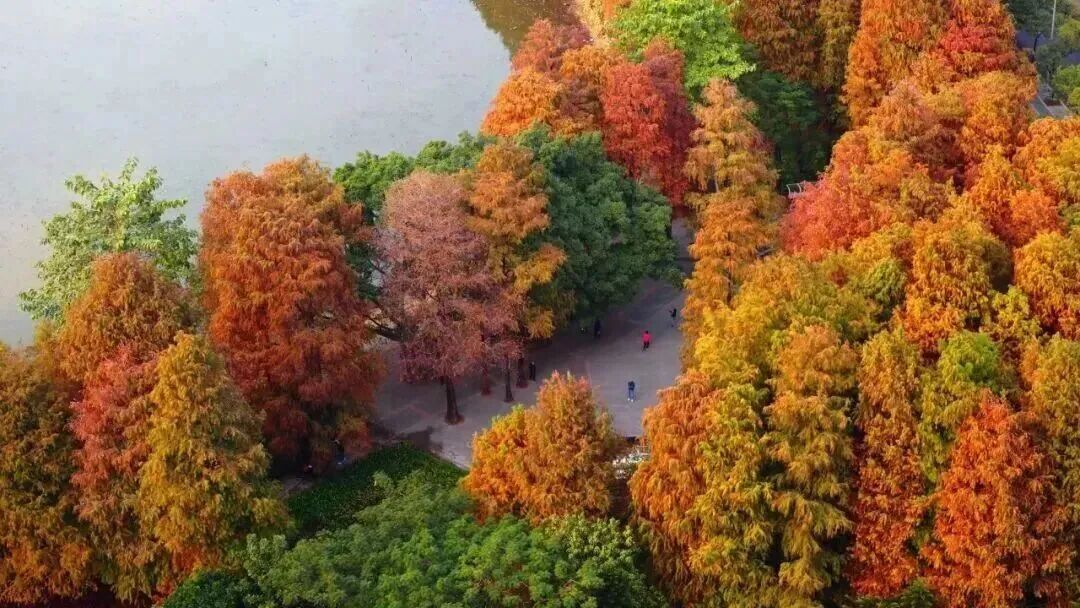 各大公園的落羽杉悄然泛紅