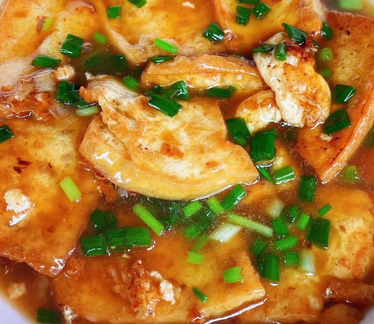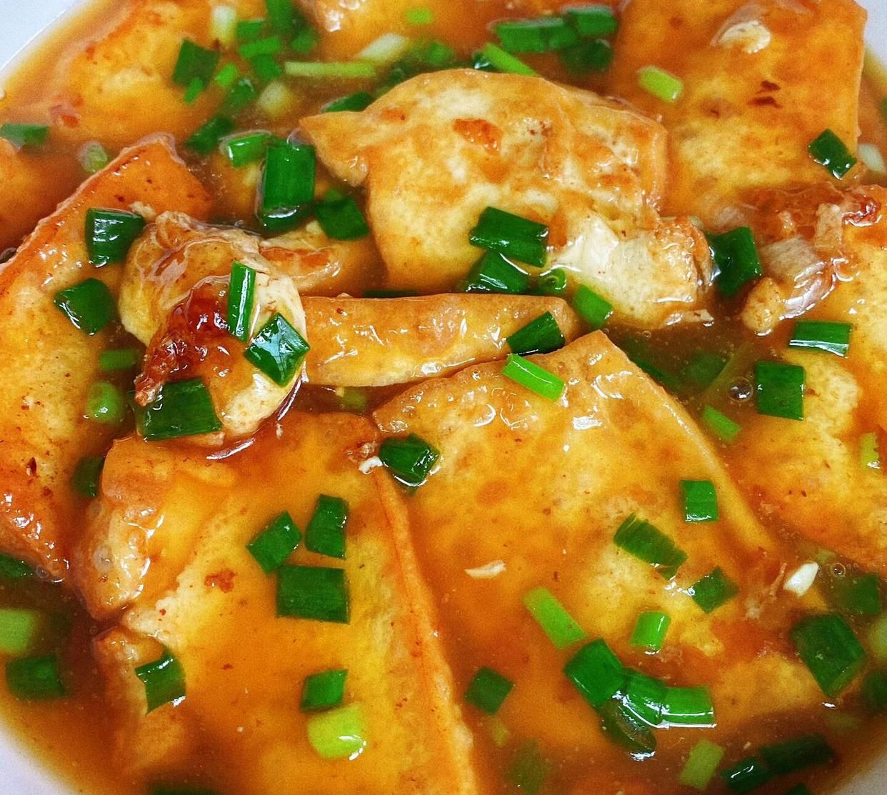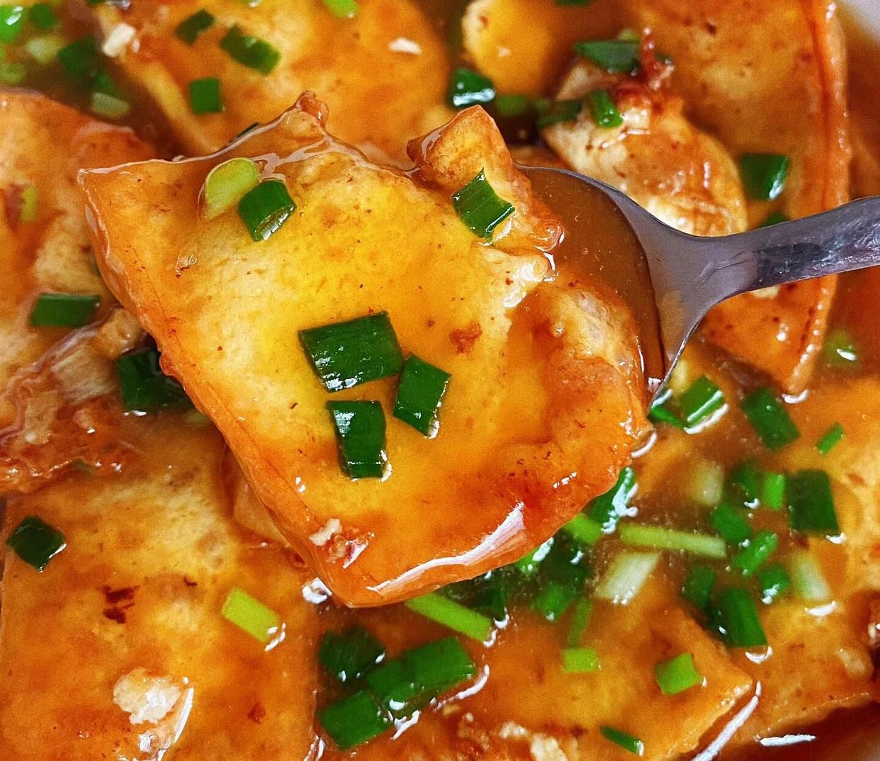 剛出鍋的豆腐帶著焦香脆邊,咬開是顫巍巍的嫩豆腐,濃稠醬汁順著指縫往下流……
