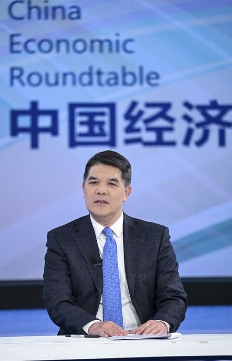 國家發展改革委宏觀經濟研究院院長黃漢權在第二十六期“中國經濟圓桌會”大型全媒體訪談節目錄制現場發言。 新華社記者 陳曄華 攝