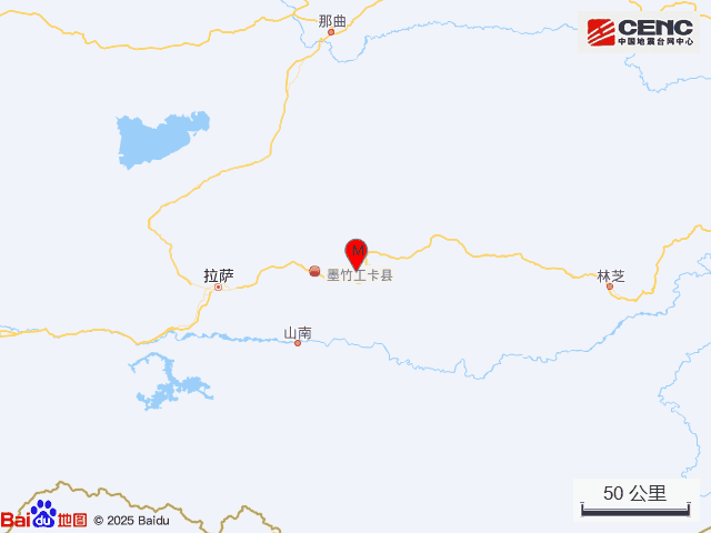 據中國地震臺網正式測定,12月17日12時49分在西藏拉薩市墨竹工卡縣發(fā)生3.2級地震。