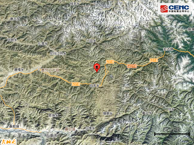 震中地形:震中5公里范圍內平均海拔約5196米。