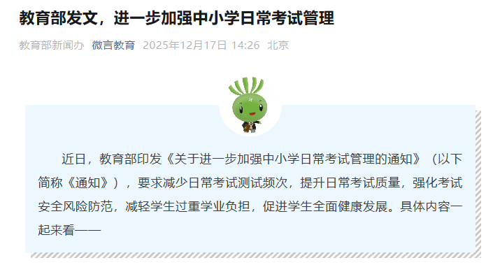 教育部發(fā)文,進(jìn)一步加強(qiáng)中小學(xué)日常考試管理