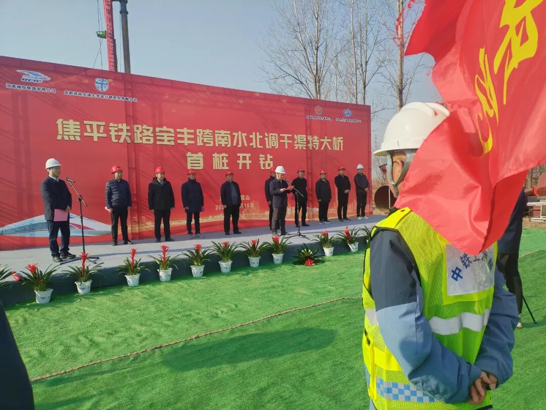 伴隨著鉆機的轟鳴聲,由河南鐵建投集團河南城際鐵路有限公司建設、中國鐵路設計集團總承包管理、中鐵上海工程局集團承建的焦平鐵路全線最長橋梁——寶豐跨南水北調干渠特大橋首根樁基順利開鉆,標志著該橋主體工程進入實質性施工階段。