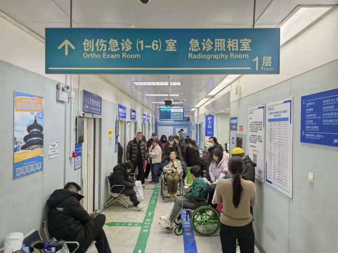 北京積水潭醫院急診,患者在診室外候診。