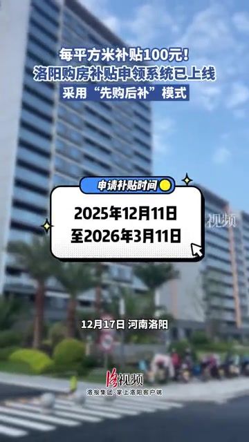 17日從洛陽市住建局住房中心獲悉,“洛快辦”App上線購房補貼申領系統,即日起,符合補貼條件的購房者通過“洛快辦”App線上提交申請并通過審核,即可獲得100元/平方米購房補貼。