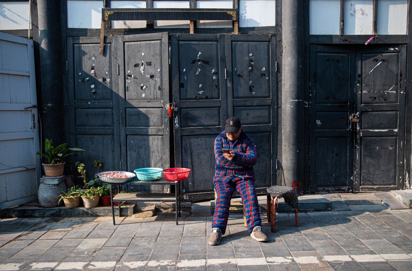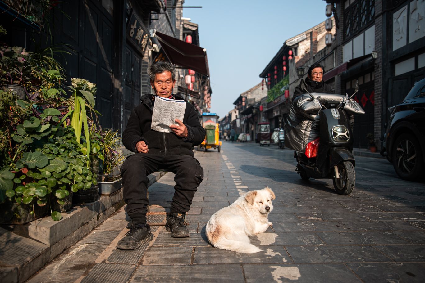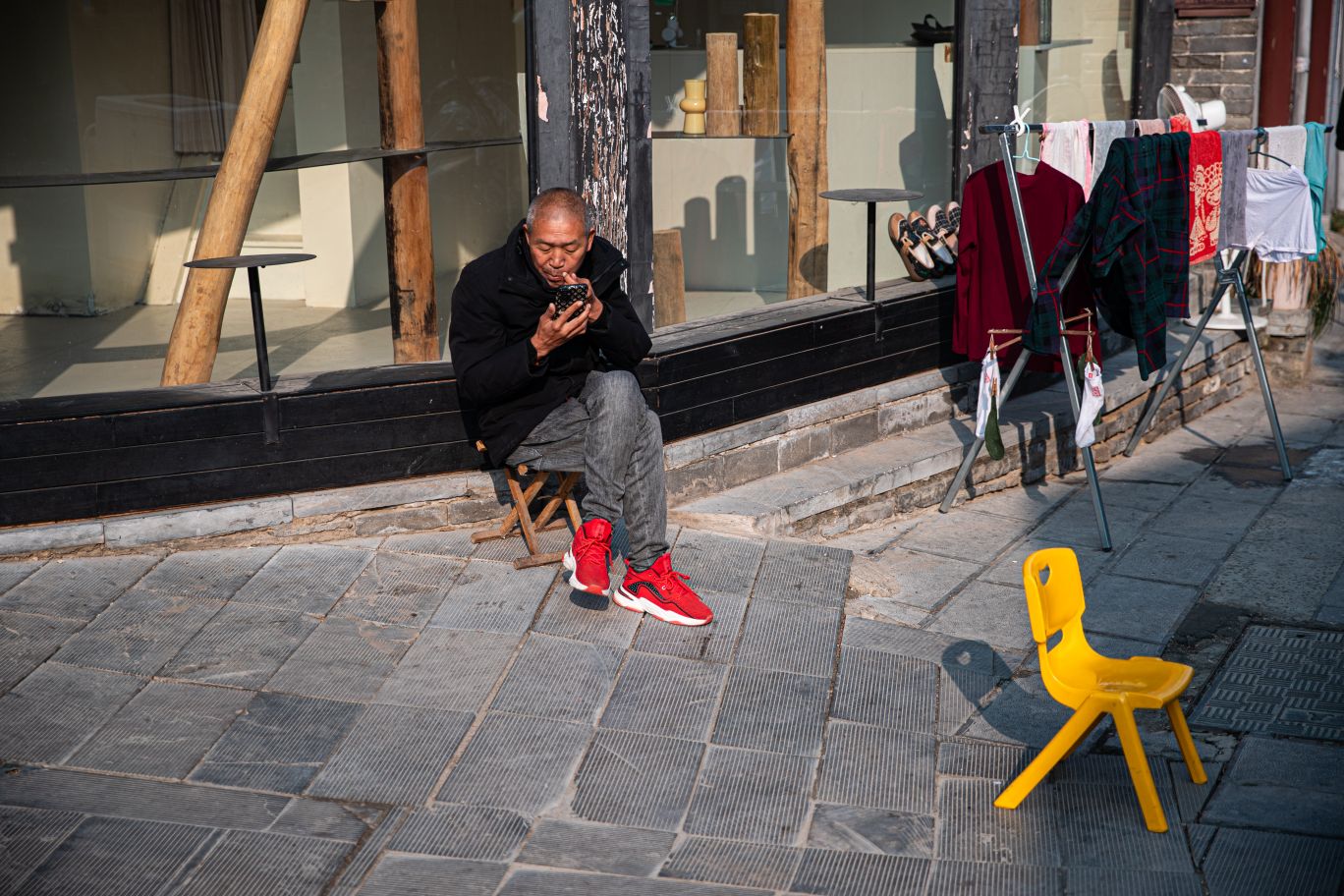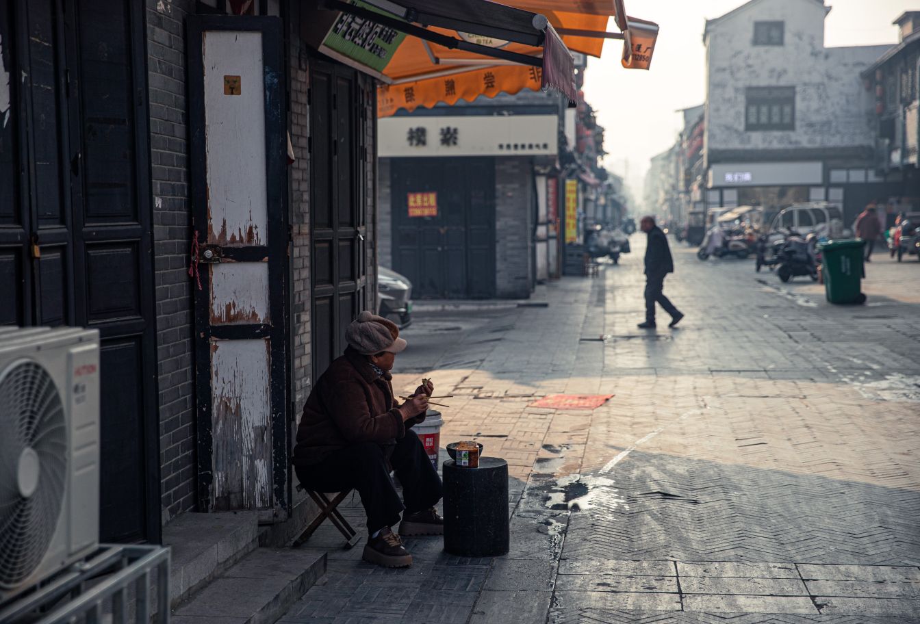 小馬扎是這里的 “固定席位”:有人蜷著刷手機,有人在暖陽下扒盒飯;看報的人腳邊,小狗把影子蜷成蓬松的團,路過的電動車裹著銀箔擋風被,風里卷著糕點鋪的甜香。