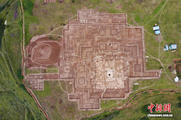 2024年9月11日,航拍甘肅省隴南市禮縣四角坪遺址。四角坪遺址是首次發(fā)現(xiàn)的規(guī)模宏大、格局規(guī)整的秦代大型建筑群。(資料圖) 李亞龍 攝