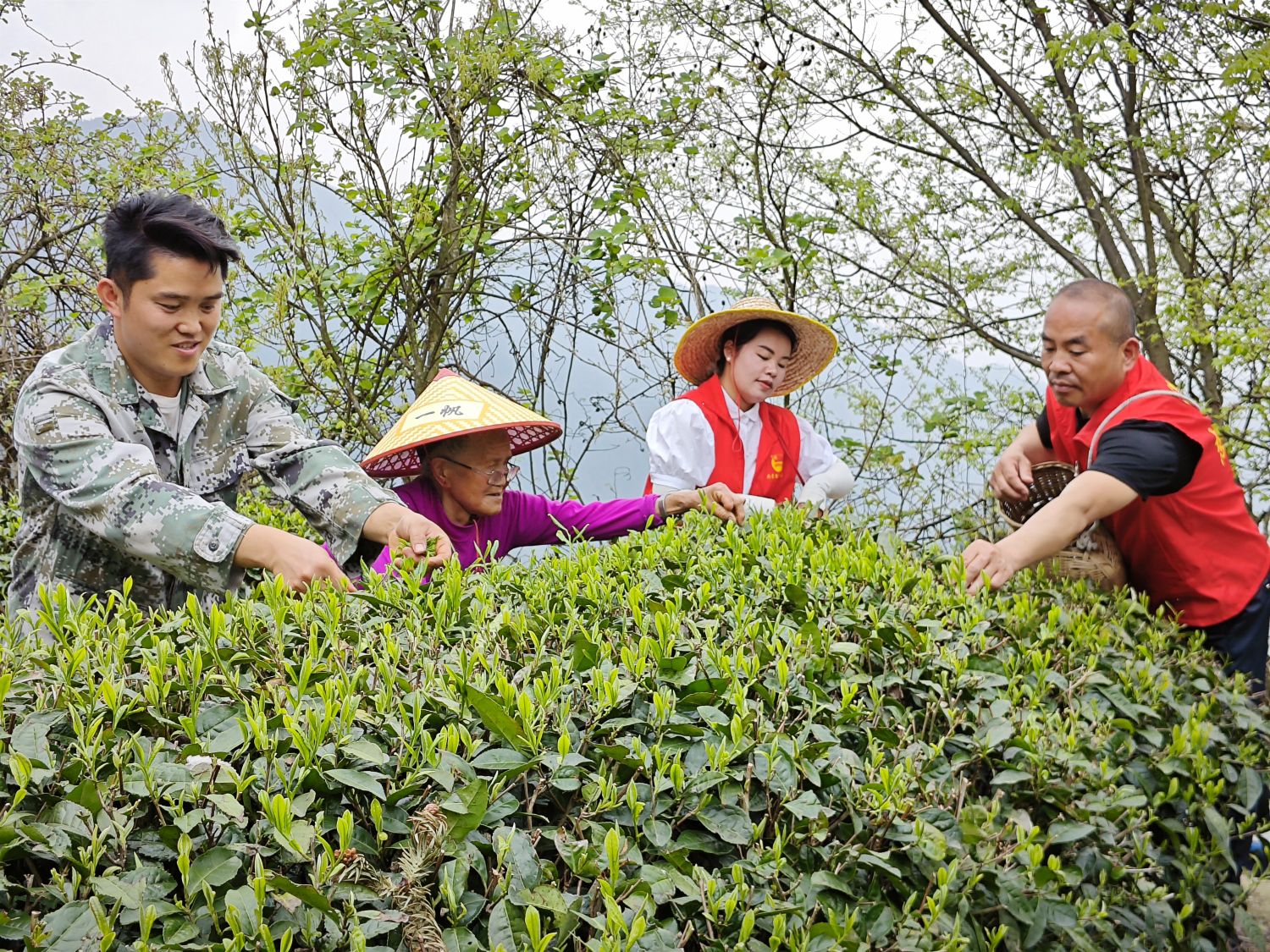 清晨,當(dāng)?shù)谝豢|陽光灑在茶園上,整個茶園便籠罩在一片金色的光輝中。茶葉上的露珠在陽光的照射下閃閃發(fā)光,仿佛是一顆顆璀璨的明珠。茶農(nóng)們早早地來到茶園,開始了一天的勞作。他們手持剪刀,輕輕地修剪著茶樹上的枝葉,確保每一片茶葉都能得到充足的陽光和養(yǎng)分。
