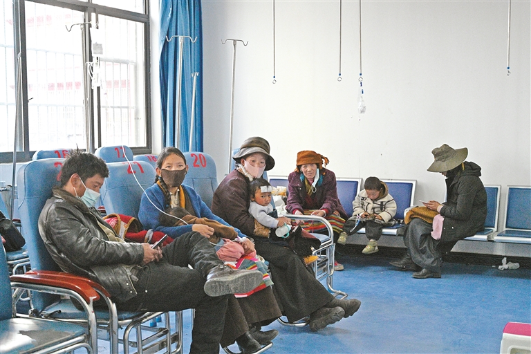 圖為桑珠孜區中心醫院兒科醫生給兒童看病。