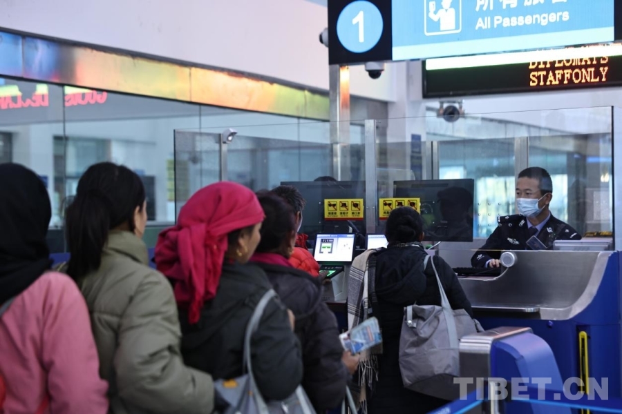 圖為聶拉木邊檢站民警驗放出入境旅客。