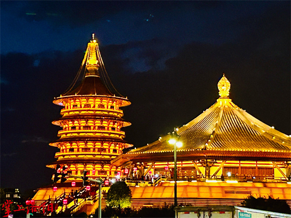 夜晚: 九洲池燈火璀璨,拍一組唐風大片慶新年
