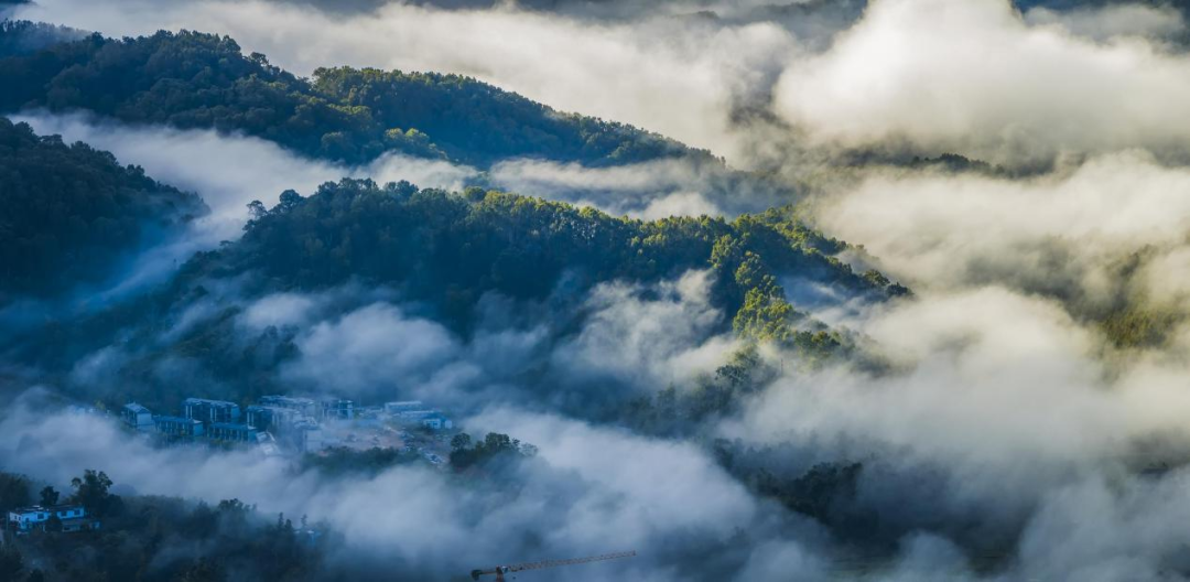 云霧繚繞的五指山水滿鄉。孟志軍 攝