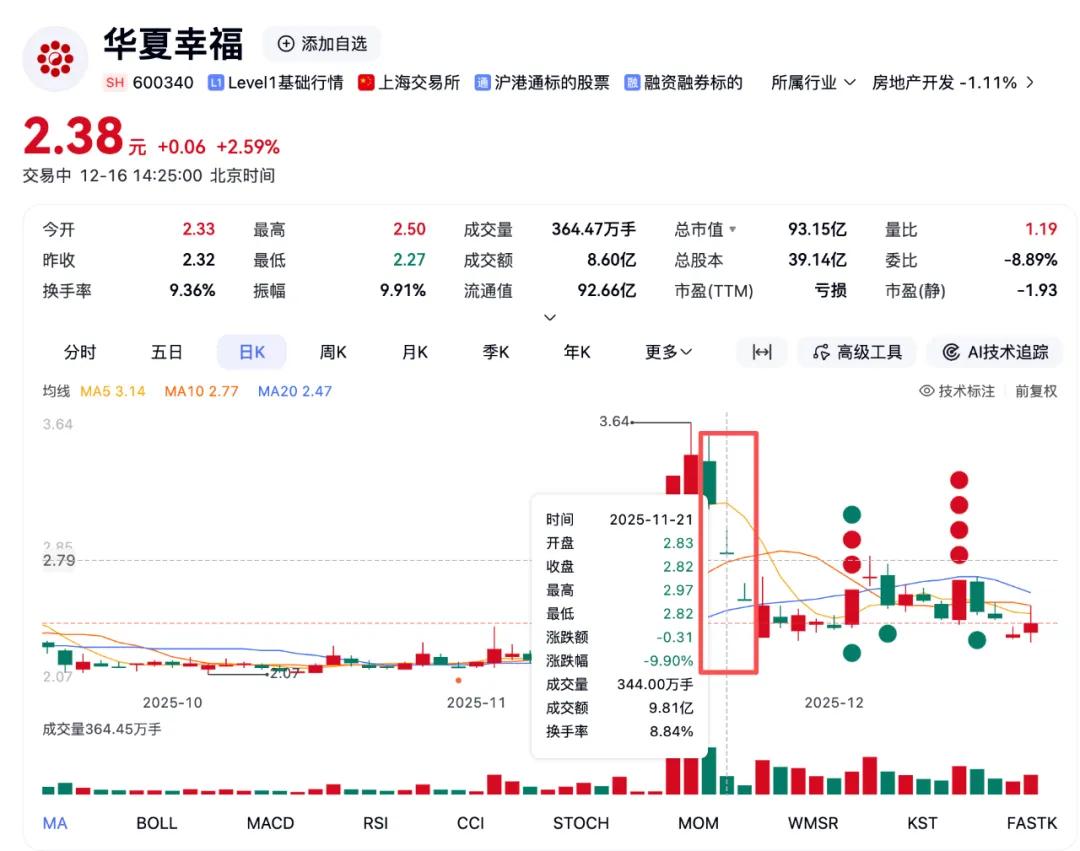 11月19日盤中,華夏幸福股價創出了3.64元的近期高點。在王葳發布公開聲明次日,華夏幸福股價連續三日大跌。