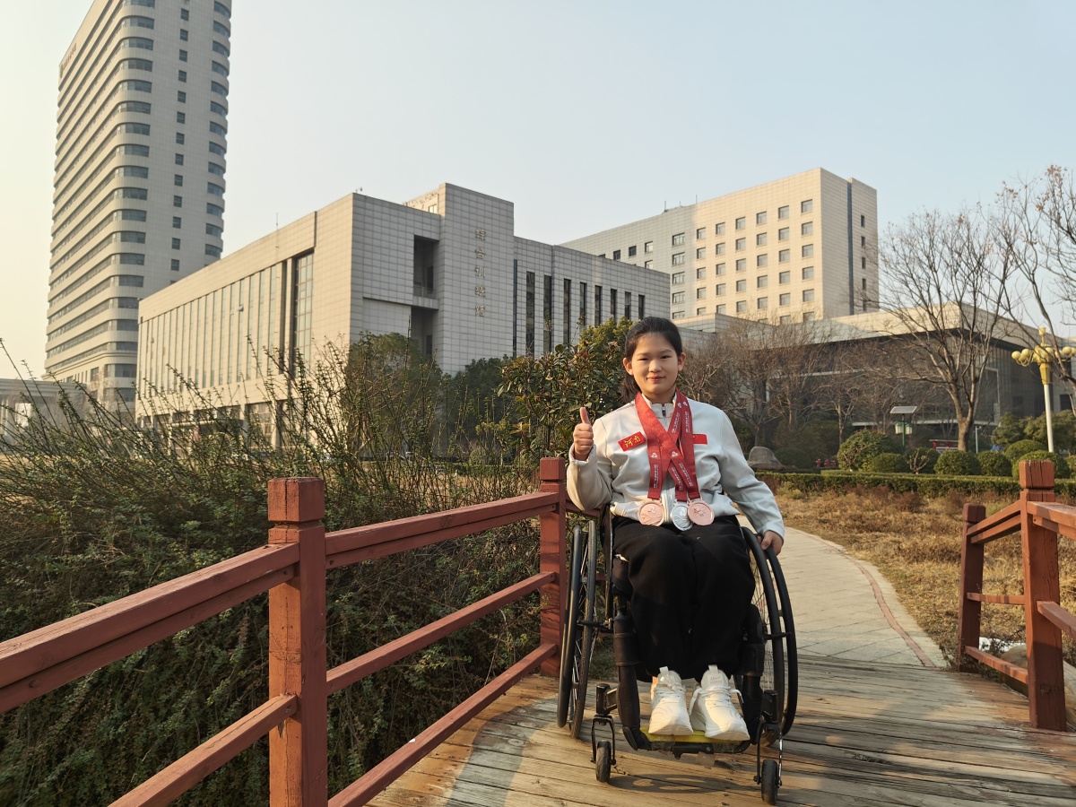 殘疾人運動員張佳敏也是一名年輕的“老將”。她在殘特奧會田徑項目比賽中,分別獲得F46級女子鐵餅、F46級女子鉛球金牌。