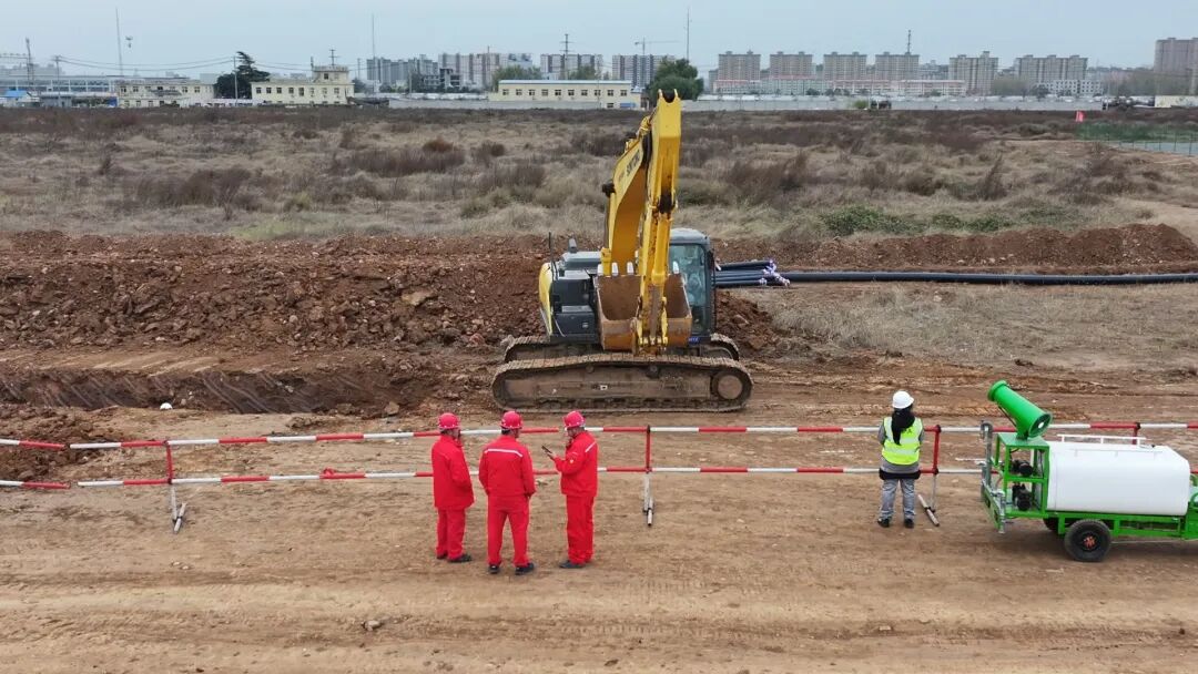 在項目工地,挖掘機轟鳴駛過,工人們加緊鋪設管道,現場一派忙碌景象。?目前,現場地基預處理及承載力檢測全部結束,臨水、臨電和廠區道路、給排水及消防水管網施工全面展開,試樁及檢測工作已全部完成,為樁基施工奠定了堅實基礎。