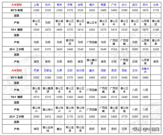 今日大中型材價格:主穩運行