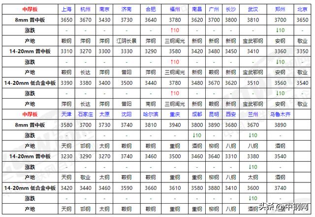 今日中厚板價格:漲跌都有