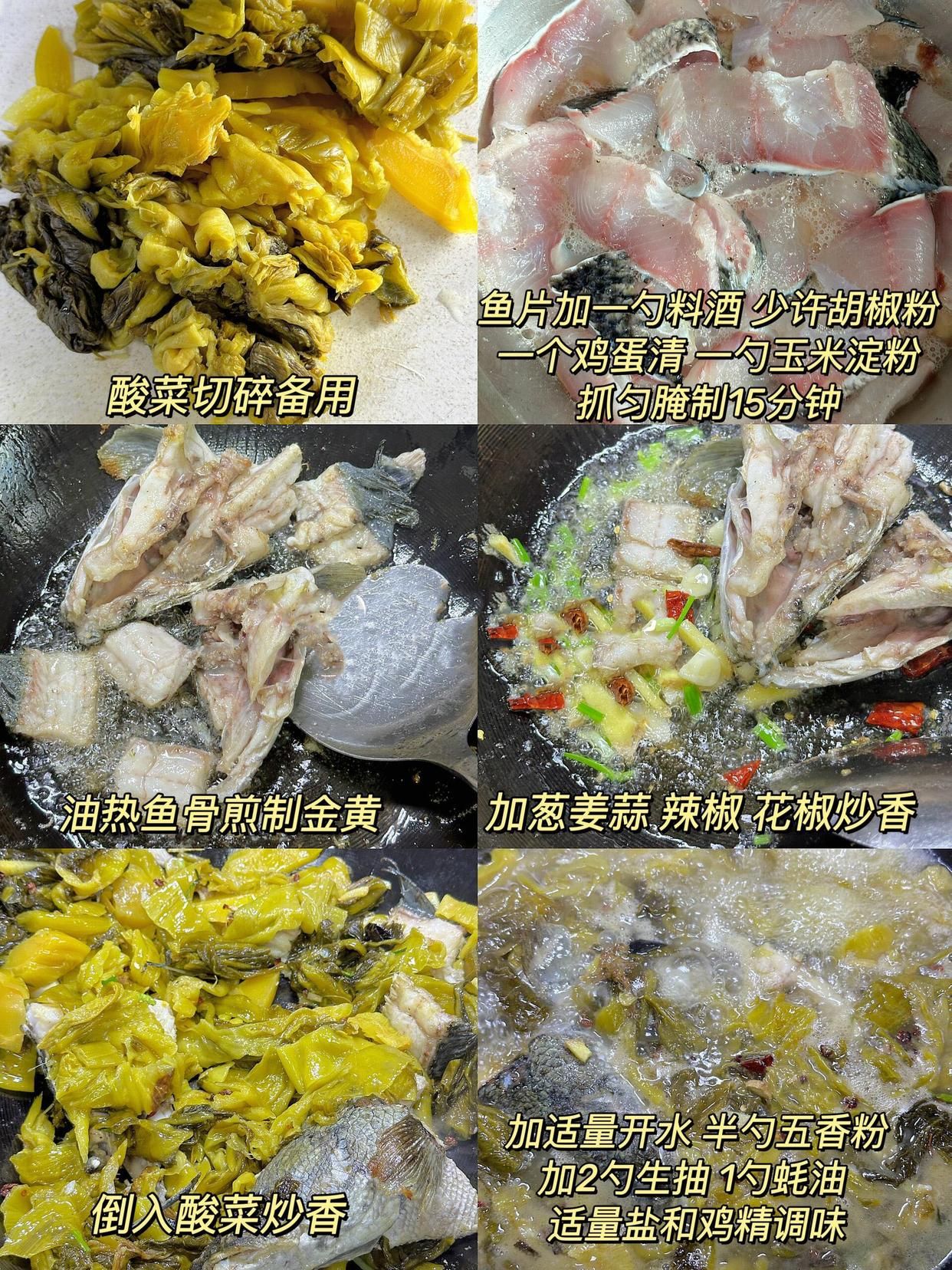 冷鍋倒3勺食用油,放入魚骨和魚頭中火煎制。煎的時候不要頻繁翻動,等底面金黃再翻面,這樣能煎出奶白色的魚湯。魚骨煎好后推到鍋邊,中間放蔥姜蒜爆香,接著加入干辣椒和青紅花椒炒出紅油。把炒干的酸菜倒進去,轉大火翻炒3分鐘,炒到酸菜邊緣微微發焦,這時候整個廚房都彌漫著讓人流口水的香氣!